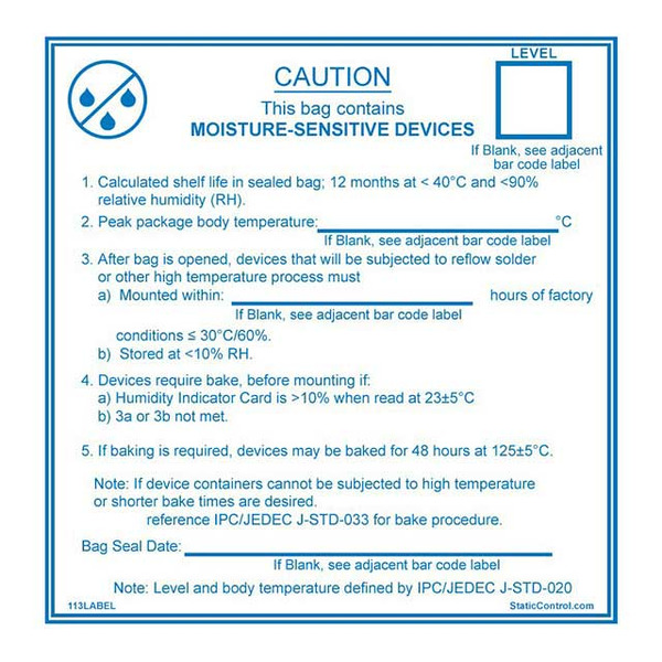 | 标签类型: | Moisture Warning Label |