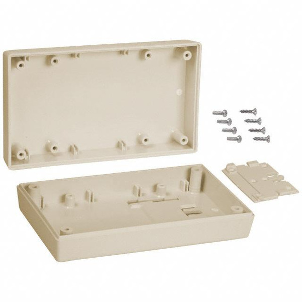 | Detailed Description: | Box Plastic, ABS Almond Hand Held, Split Sides 5.620" L x 3.250" W (142.75mm x 82.55mm) X 1.500" (38.10mm) |