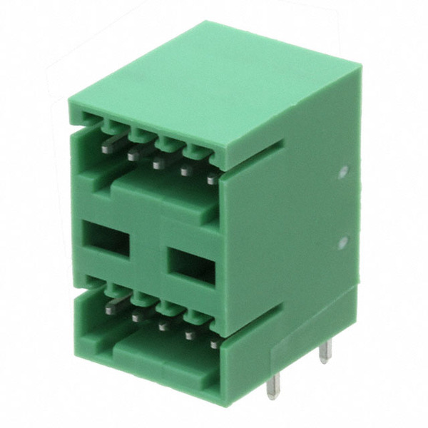 | Detailed Description: | 10 Position Terminal Block Header, Male Pins, Shrouded (4 Side) 0.098" (2.50mm) 90°, Right Angle Through Hole |
