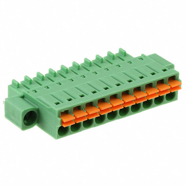 | Detailed Description: | 10 Position Terminal Block Plug, Female Sockets 0.138" (3.50mm) 180° Free Hanging (In-Line) |