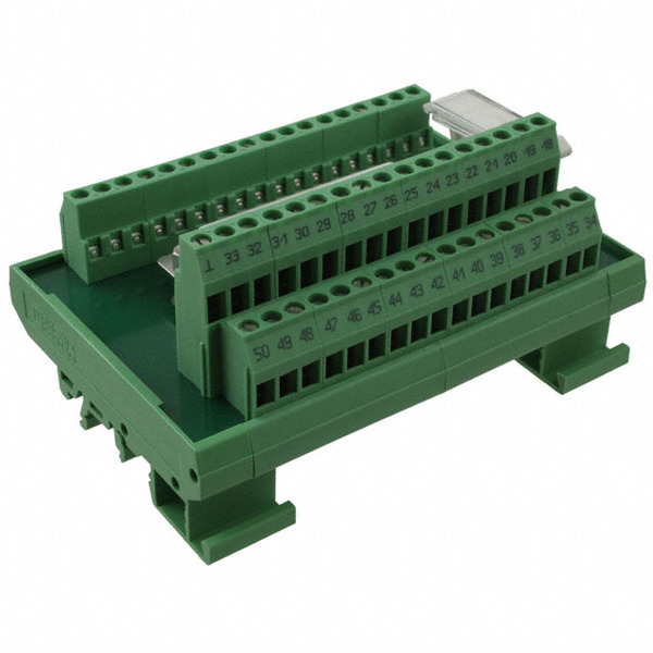 | Detailed Description: | 50 Position Interface Module Terminal Blocks - Screw Connection To D-Sub, Female 12-24 AWG |