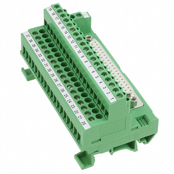 | Detailed Description: | 37 Position Interface Module Terminal Blocks - Screw Connection To D-Sub, Female 12-24 AWG |
