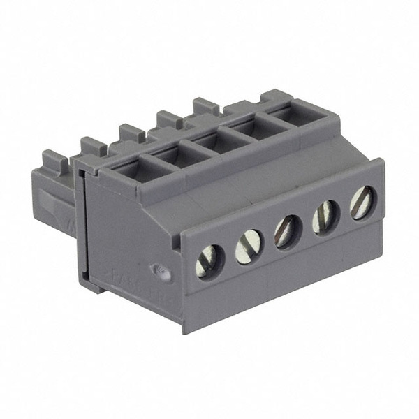 | Detailed Description: | 5 Position Terminal Block Plug, Female Sockets 0.150" (3.81mm) 90° Free Hanging (In-Line) |