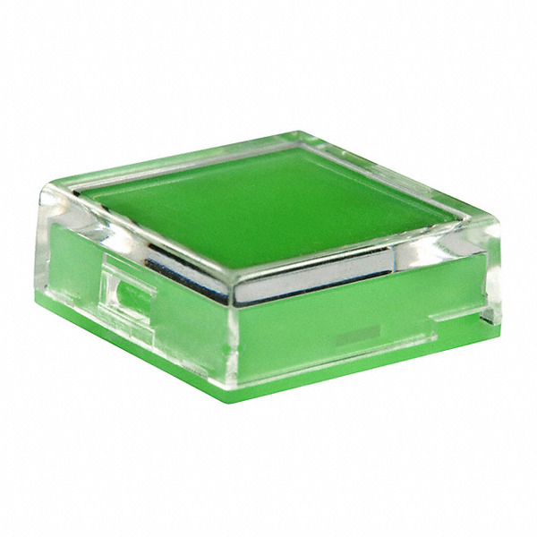 | Detailed Description: | Square Pushbutton Switch Cap Clear, Green Snap Fit |