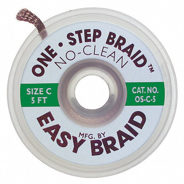 | Detailed Description: | Desolder Braid/Wick No Clean, Rosin, Mildly Activated (RMA) Green 0.075" (1.91mm) 5' (1.524m) |